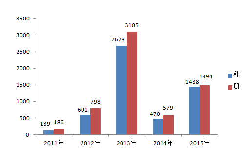 样本缴纳数量 2011年 2012年 2013年 2014年 2015年 地质出版社上缴文献(种/册) 218/671 416/1244 253/664 240/538 303/740 上缴中文期刊(种/册) — — — 70/1016 68/820 合计 218/671 416/1244 253/664 310/1554 371/1560
